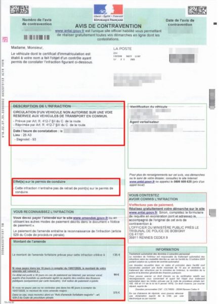 « Circulation d’un véhicule non autorisé sur une voie réservée aux véhicules de transport en commun ».
