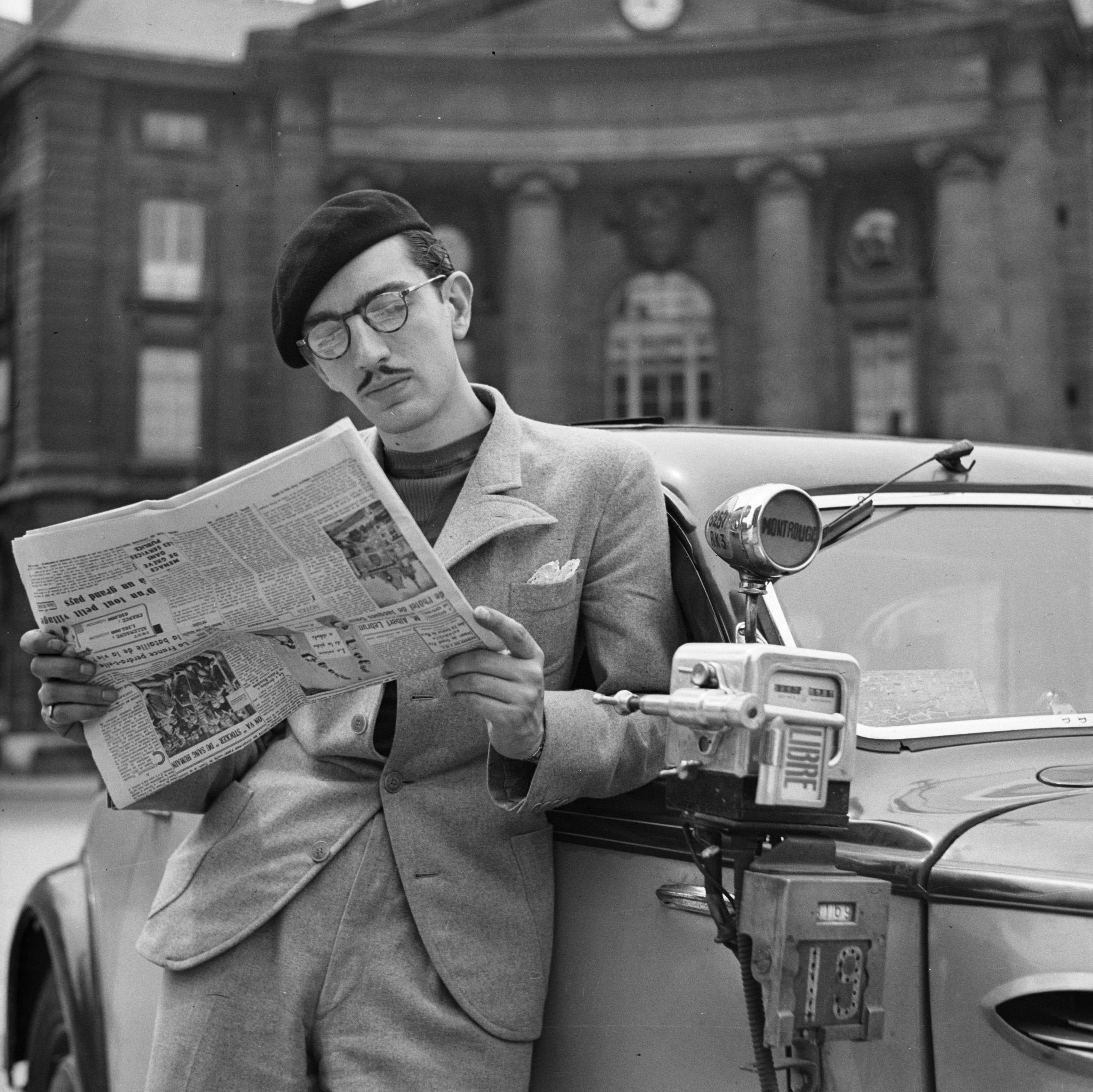 File:Student als taxichauffeur leest de krant, Bestanddeelnr 254-2094.jpg